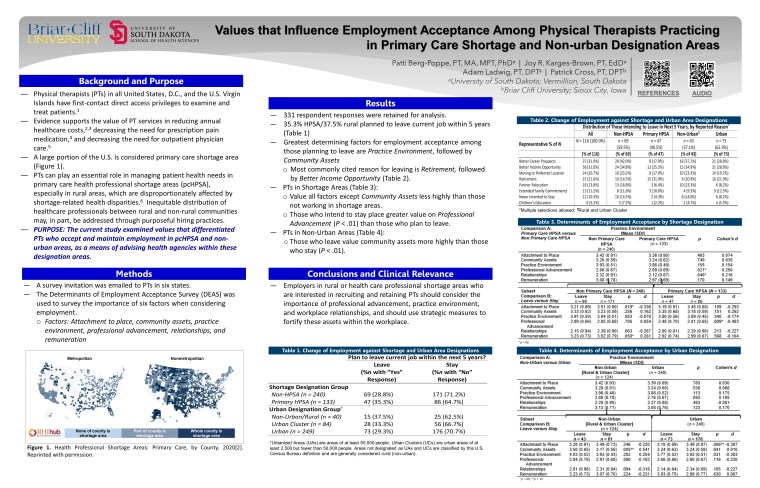 Values that Influence Employment Acceptance Among Physical Therapists Practicing in Primary Care Shortage and Non-urban Designation Areas