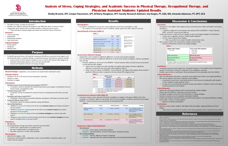 Analysis of Stress, Coping Strategies, and Academic Success in PT, OT, and PA Students: Updated Results
