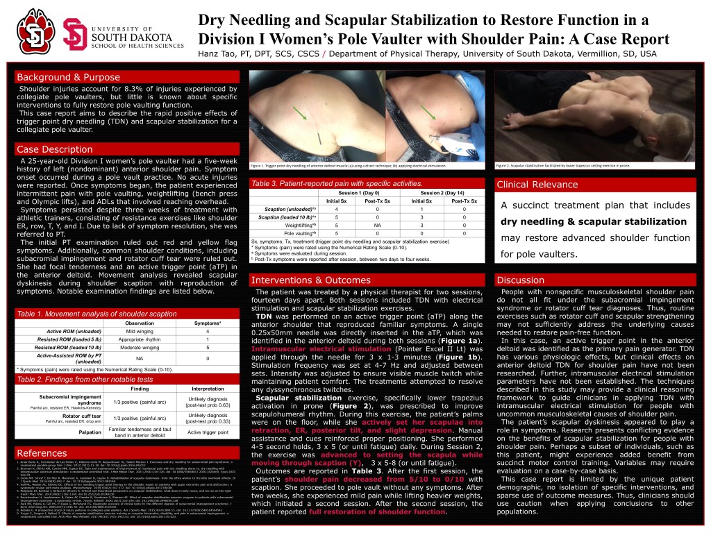 3 Comments on “Dry Needling and Scapular Stabilization to Restore Function in a Division I Women’s Pole Vaulter with Shoulder Pain: A Case Report