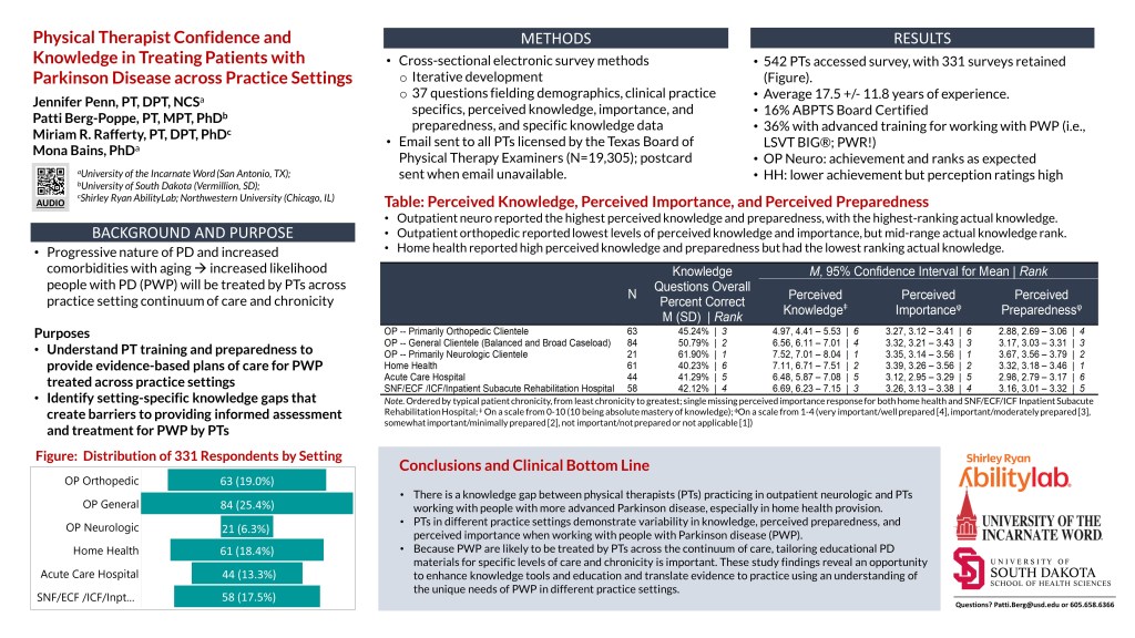 Physical Therapist Confidence and Knowledge in Treating Patients with Parkinson Disease across Practice Settings