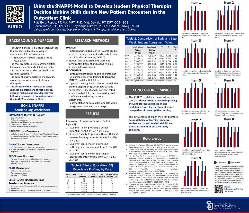 1 Comment on “Using the SNAPPS Model to Develop Student Physical Therapist Decision Making Skills during New Patient Encounters in the Outpatient Clinic